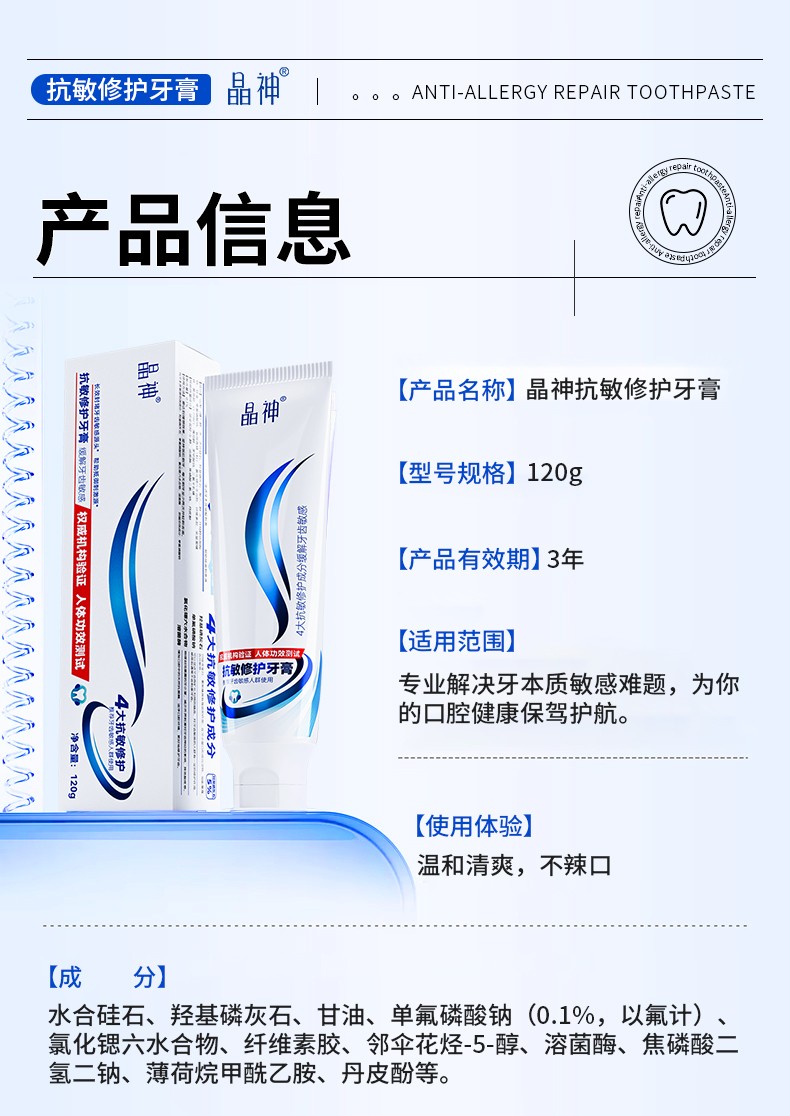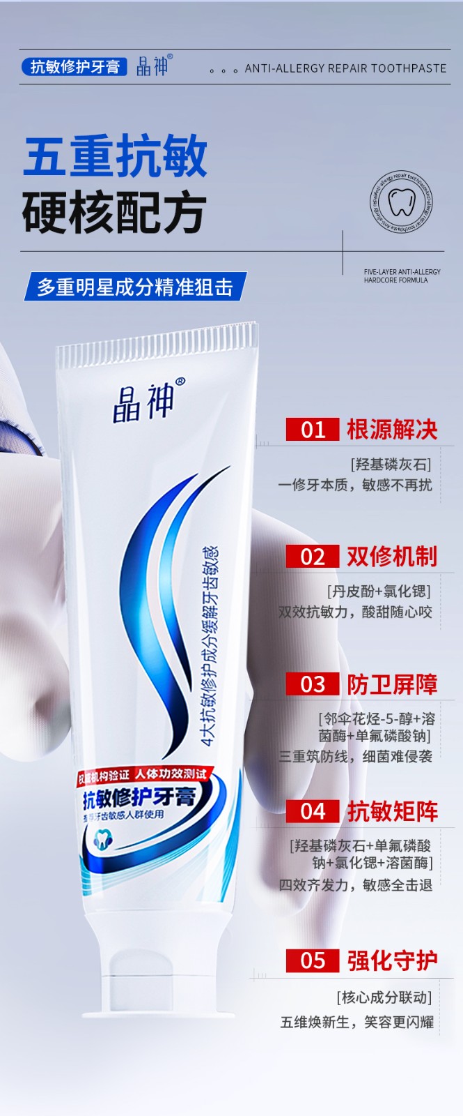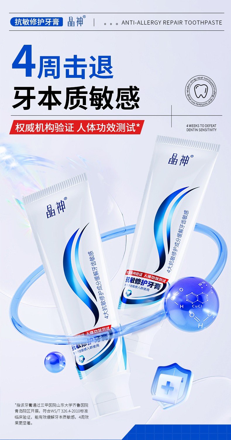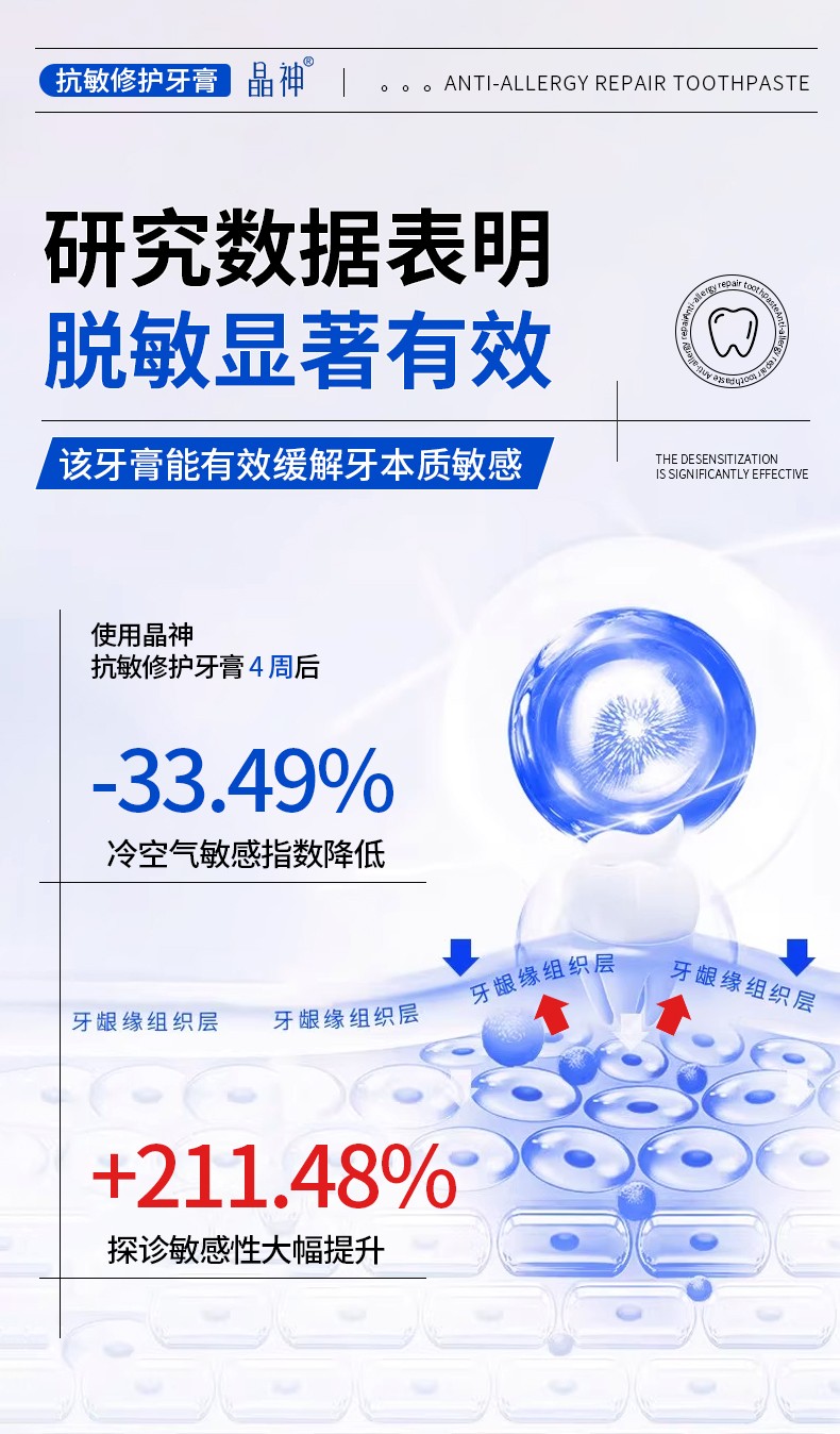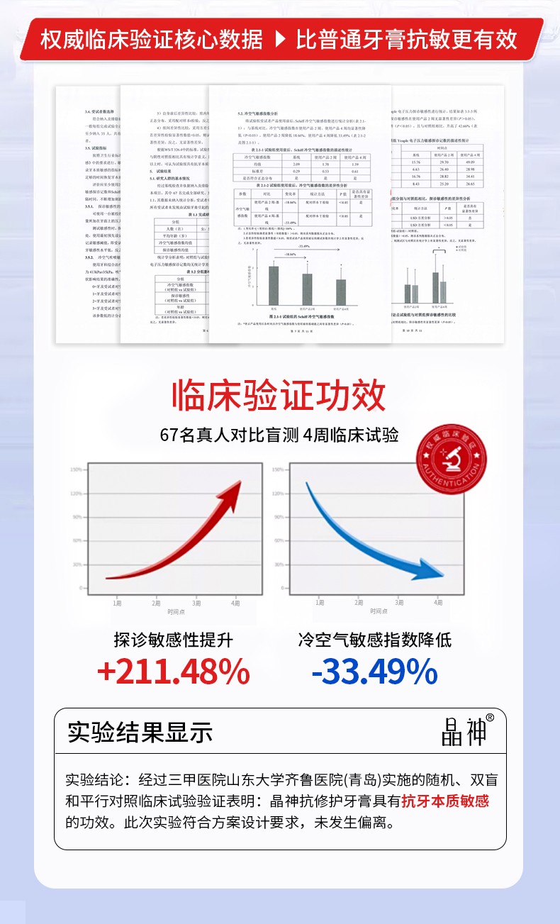湖州晶神抗敏修護(hù)牙膏:三甲醫(yī)院臨床驗證:4 周擊退牙本質(zhì)敏感!