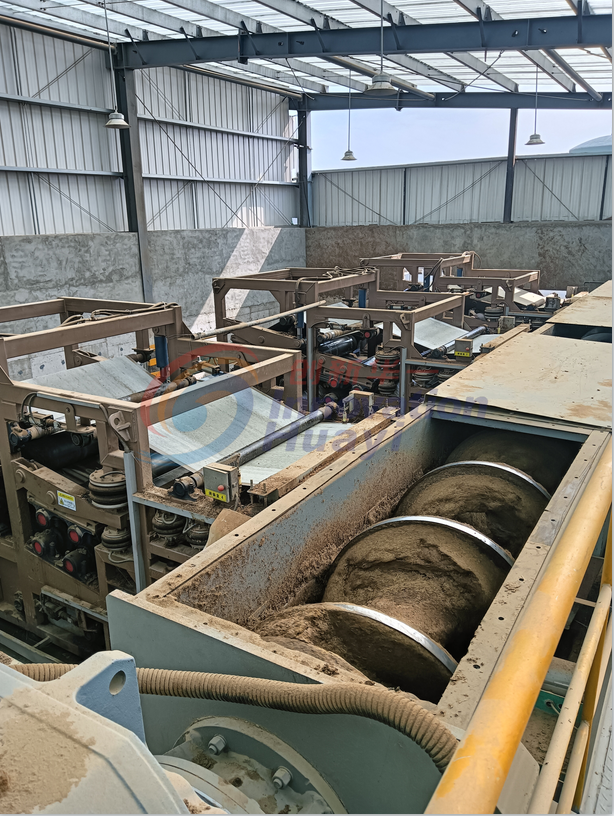 采用三臺帶寬1.5米的帶式脫水機(jī),單機(jī)處理量約8-10噸/小時,滿足中大型牛場日處理需求,同時滿足纖維完整性保留與深度脫水需求