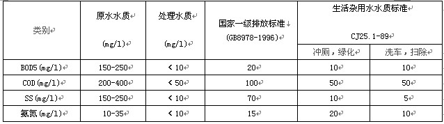 出水水質好:采用了膜生物反應器技術,使系統出水水質在各個方面均優于傳統的污水處理設備,出水水質在感官上已接近于自來水的情況,可以作為中水回用。
