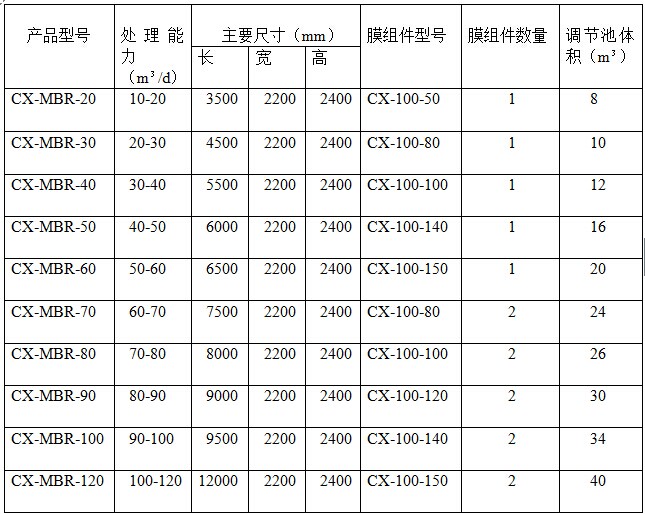 一體化智能(MBR)凈化成套設備產品列表: