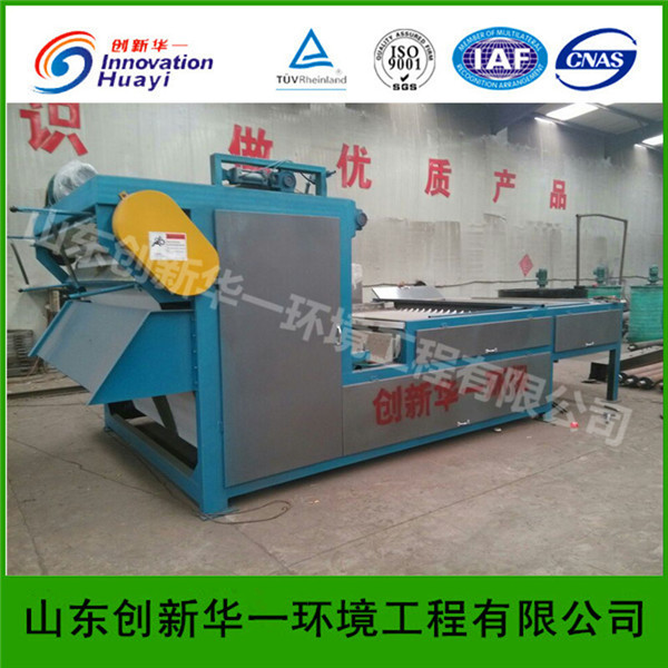 1、 洗塑污泥脫水機是在普通帶式脫水機的基礎上增加一套預濃縮脫水段將污泥濃縮與脫水段合于一本的新型過濾設備。其最為明顯的特征是具有三張濾網,一張為濃縮所有,有單獨驅動和調節裝置,以接受污泥的負荷。