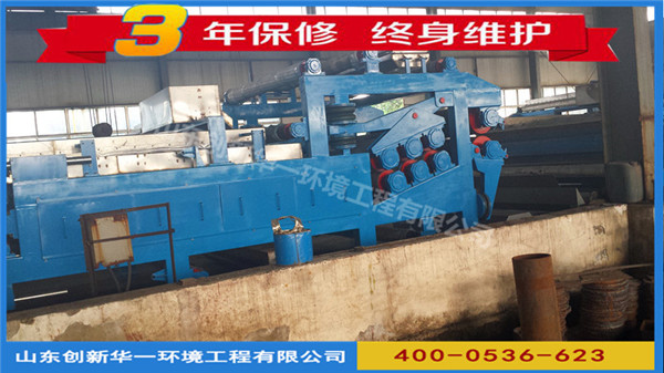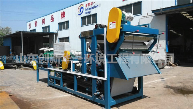 1、采用超長過濾與強力對輥壓榨于一體的脫水方式,處理量大,壓出來的濾餅含水率比普通機低10%。