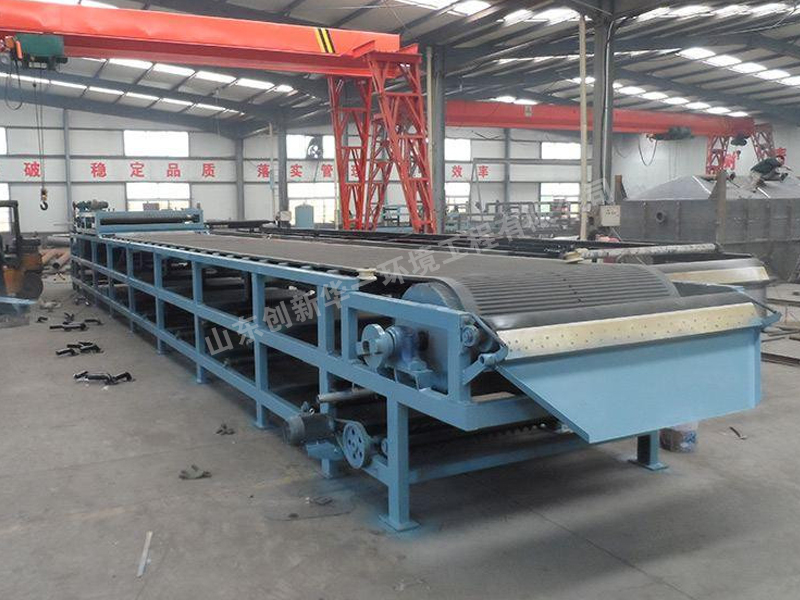 帶式真空過濾機(jī)由橡膠帶、真空箱、驅(qū)動(dòng)輥、從動(dòng)輥、加料槽、濾布糾偏裝置、驅(qū)動(dòng)裝置、濾布洗滌裝置、機(jī)架等部件組成,是一款充分利用物料重力和真空吸力實(shí)現(xiàn)固液分離的設(shè)備。