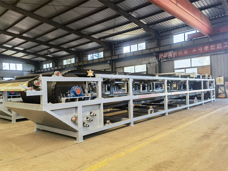 具有過濾效率高、生產能力大、洗滌效率好,濾餅水分低、操作靈活、維護簡單等優點。膠帶機經我廠多年改進和完善,產品的技術性能和質量已達到了優異水平,已廣泛應用于冶金、礦山、、化工、造紙、食品、制藥、洗煤、環保等領域中的固液分離。