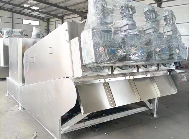 機架部分由機架和濾液槽由型鋼焊接而成,整體焊接好,剛性好,是一個整體,濾液槽用來收集疊螺過濾本體壓濾下來的濾液。