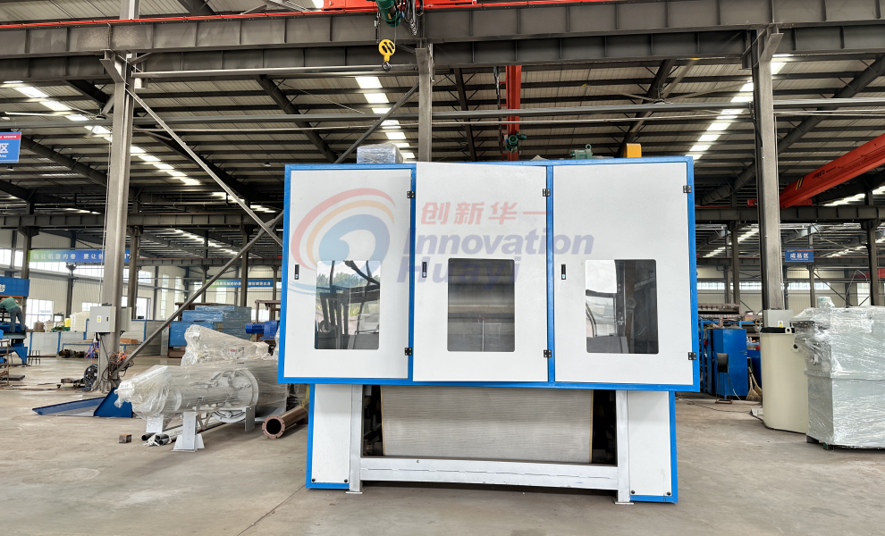 破壁后的污泥經布料器均勻地分布在重力脫水區,依靠自身的重力脫去部分水份;污泥進入預壓脫水區,在呈“S”型分布輥形成的剪切力條件下,漿料所受壓力逐漸提高,脫去物料間的大部分水份;污泥進入超高壓脫水區,液壓裝置輸出力可達100公斤,脫去污泥細胞內的水分,含水率降低至60%以下。
